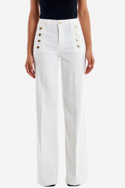 Vicolo Hvit 'Giudith' high waist vid bukse med gullknapper L34 Hvit high waist vid bukse med gullknapper fra Vicolo. Laget av 99% bomull og 1% elastan. PrisNOK1 799,00 inkl. mva. På lager AttributterL - HVITM - HVITS - HVITXL - HvitXS - HVITXXS - Hvit Antall Kjøp Ønskeliste Artikkelnr.: Pantalone DAB5170 Giudith L34 Del dette