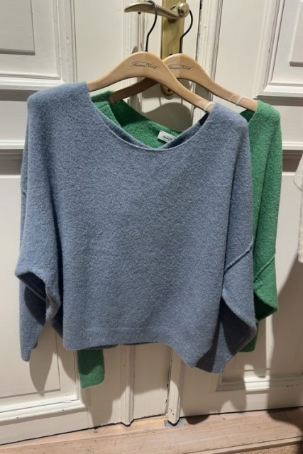 Bestselger-modell fra American Vintage i ullmiks. Lekker båthals-genser med utvendige sømmer som kan brukes off-shoulder. Laget av 32% ull, 48% polamid, 16% akryl 4% elastan. Svært STOR på størrelsen! Kun 2 størrelser: XS/S eller M/L.