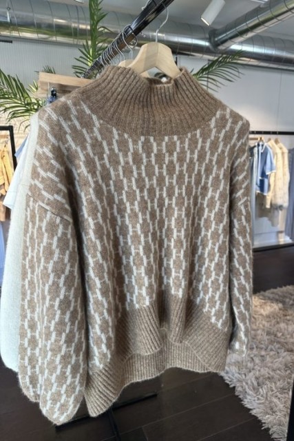 Fam New Pattern er en oppdatert versjon av vår ikoniske genser, nå med et heldekkende H-strikkemønster. Den oversized passformen kjennetegnes av høy hals, vide ermer og en lengre bakside som gir et avslappet fall. Strikket i en myk merinoullblanding med en touch av kid mohair, for komfortabel struktur og tidløs hverdags-eleganse.