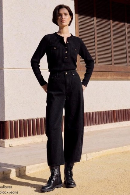 Sort barrel (tønneformet) trendy jeans fra Katrin Uri. Lekkert Katrin-Uri-monogram på den ene baklommen. Laget av 90% bomull, 10% polyester.
