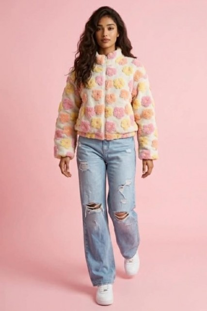 Lecoco Rose 'Amy' blomstret fleece jakke Myk, behagelig og cool blomstret fleece jakke fra Lecoco med en type bomberjakke-aktig passform. One size. Laget av 20% ull og 80% pol. PrisNOK1 499,00 inkl. mva. På lager AttributterOne size - Lys rosa Antall Kjøp Ønskeliste Artikkelnr.: Amy 35094 Del dette Produktinfo Se video: